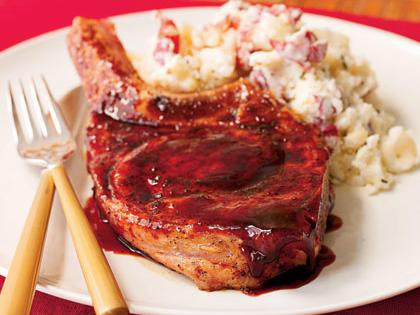 Pork Chops with Ancho Chile Rub and Raspberry Glaze