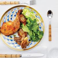http://www.epicurious.com/recipes/food/views/chicken-leg-confit-with-potatoes-and-escarole-56390118