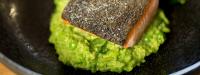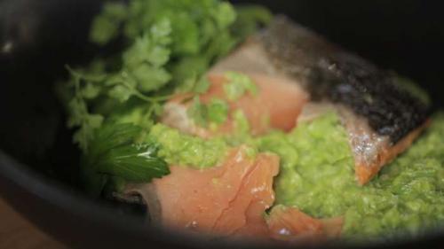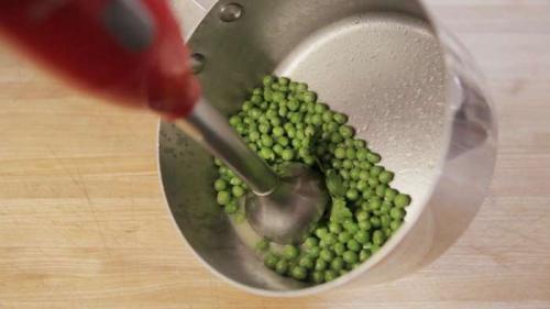 This simple side dish lends a gorgeous splash of color and a delicious, buttery texture to just about any protein-centered dinner. To prepare it, we simply cook the peas in water, mix with a not-small amount of butter, then mash and perk them up with lemon juice. Flat-leaf parsley and fresh tarragon add elegance and depth of flavor, while chives provide a sharp bite and a gorgeous, dark-green contrast to the bright, verdant peas. It all adds up to something much tastier than you might imagine and delicate enough to pair with a lightly seasoned filet of fish cooked sous vide, or even something as rich as fish and chips.